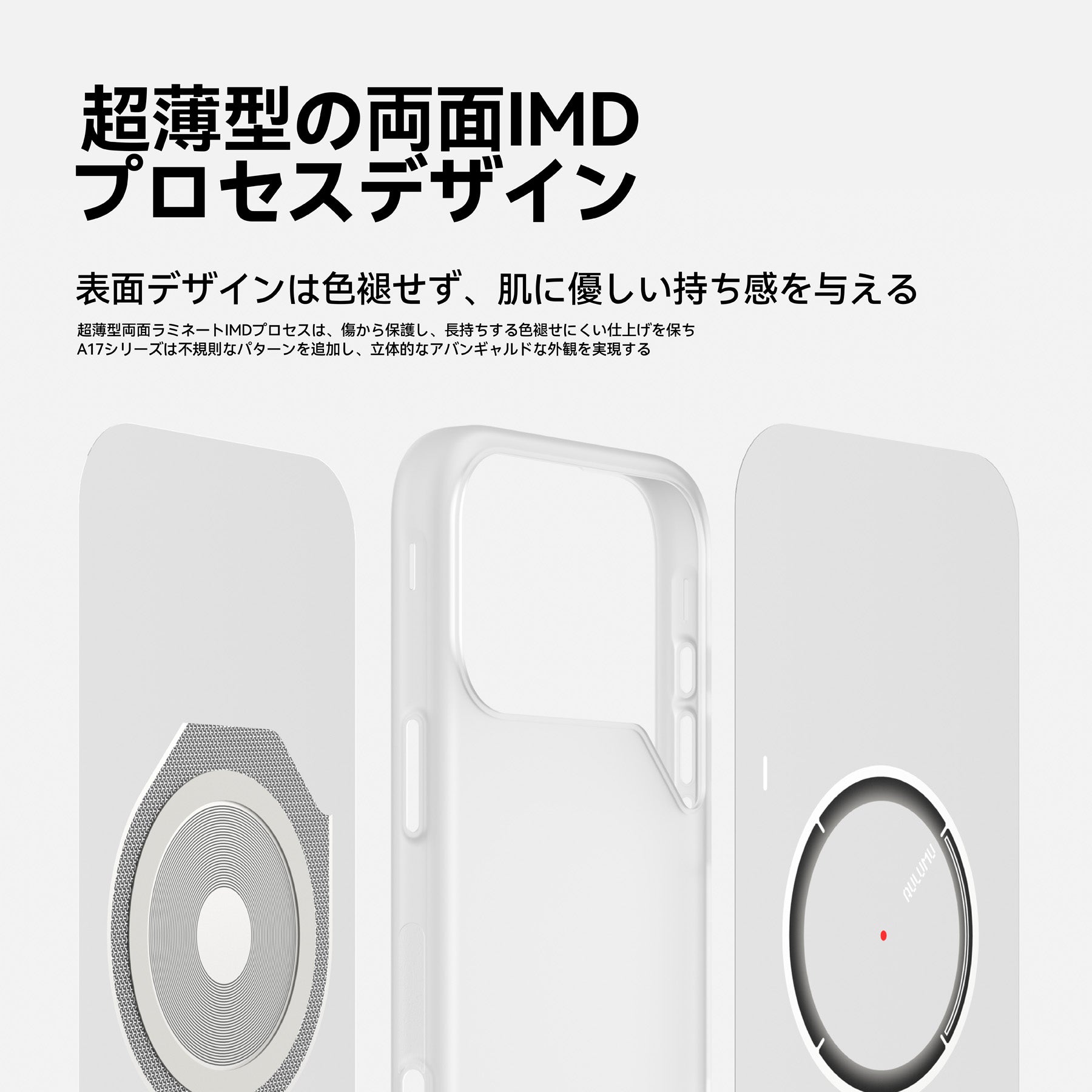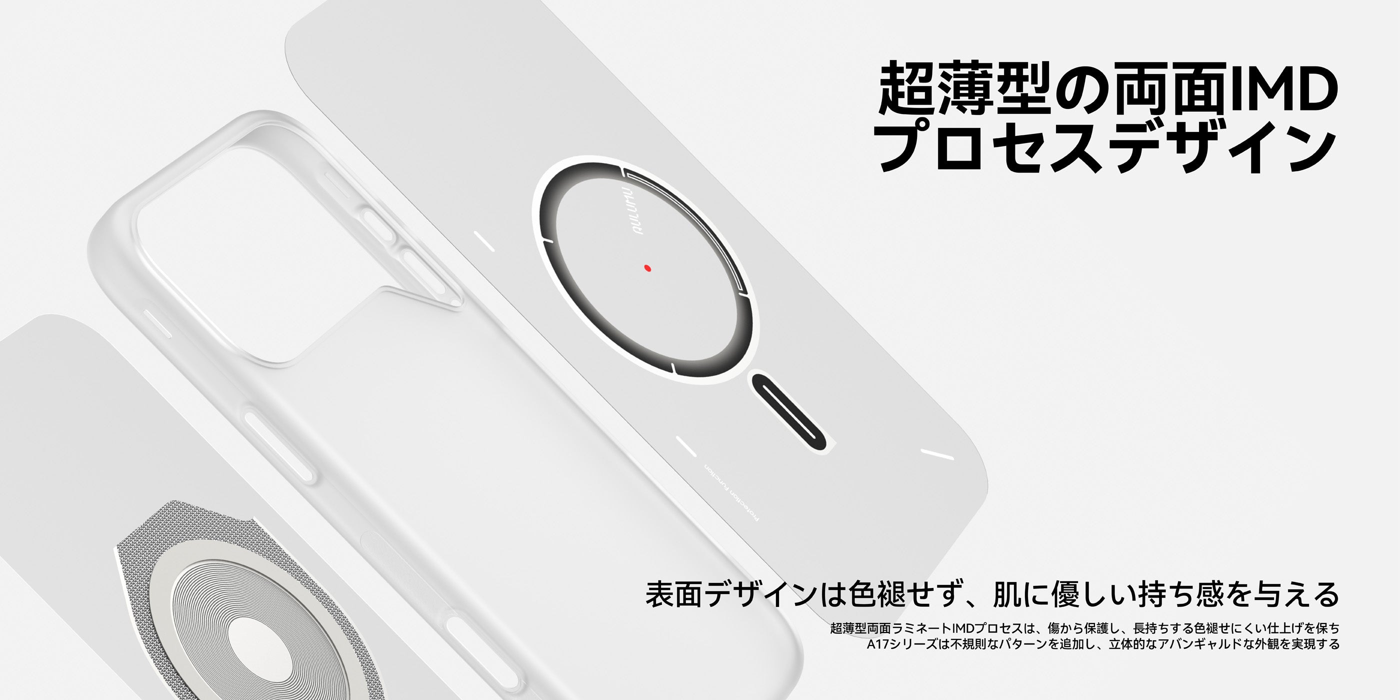 100%一体成型の耐久性TPUを使用し、両面IMD加工によって、優れた耐久性・傷防止性能を実現。デザインは色あせることなく長く美しさを保ちます。