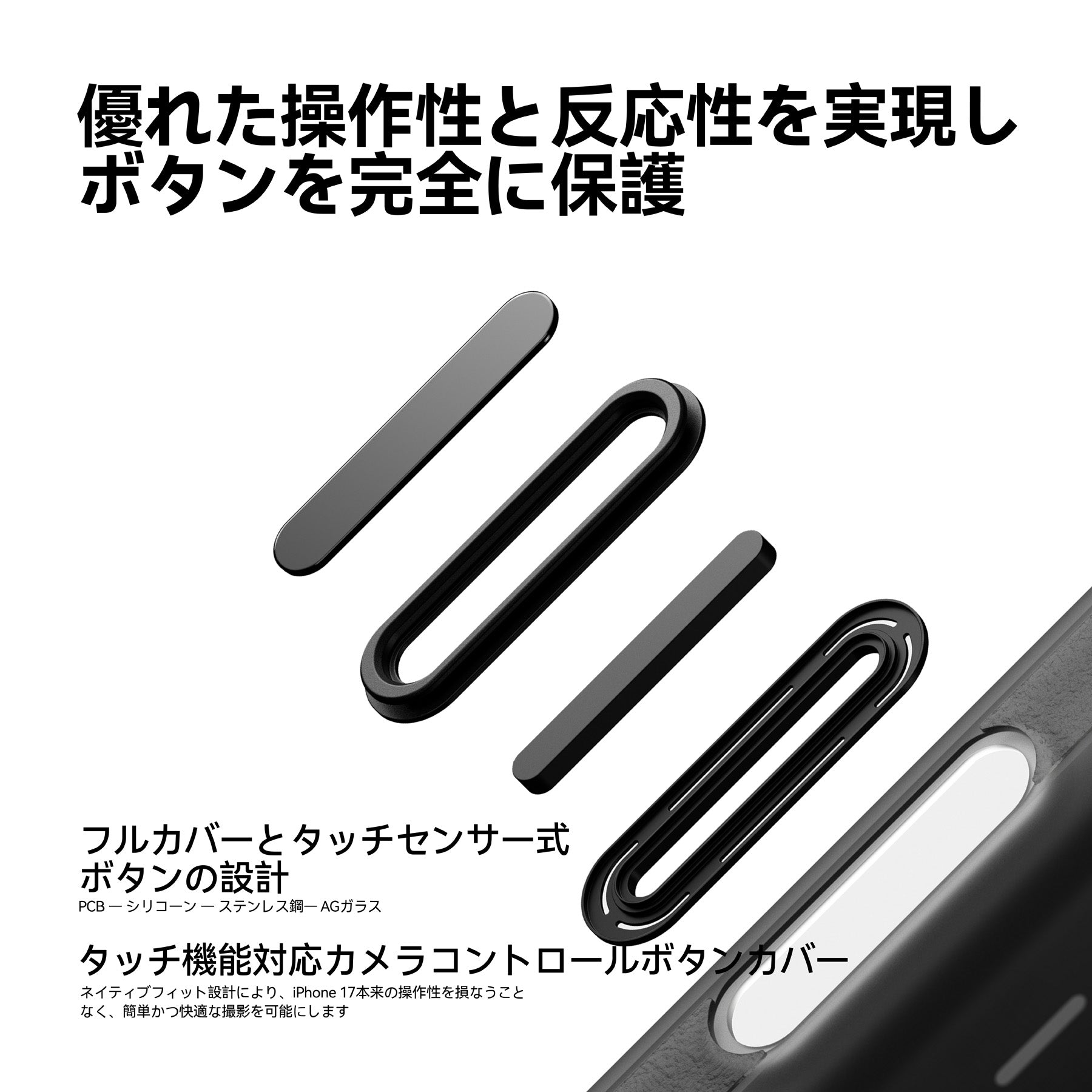 アップグレードされたフレームは安心のグリップ感を提供し、カメラを包み込むボタンカバーが、保護性能と心地よい操作感、そして精密な機能性を実現しています。