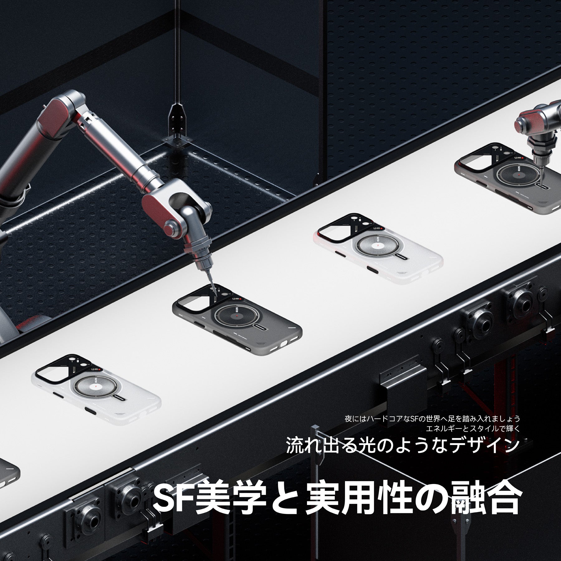 暗闇でほのかに光る蓄光アクセントが、SF的なラインを描き、夜間もスタイリッシュに演出。新色のトランスルーセントホワイトに加え、従来のトランスルーセントグレーも展開し、モダンかつエレガントな印象を与えます。