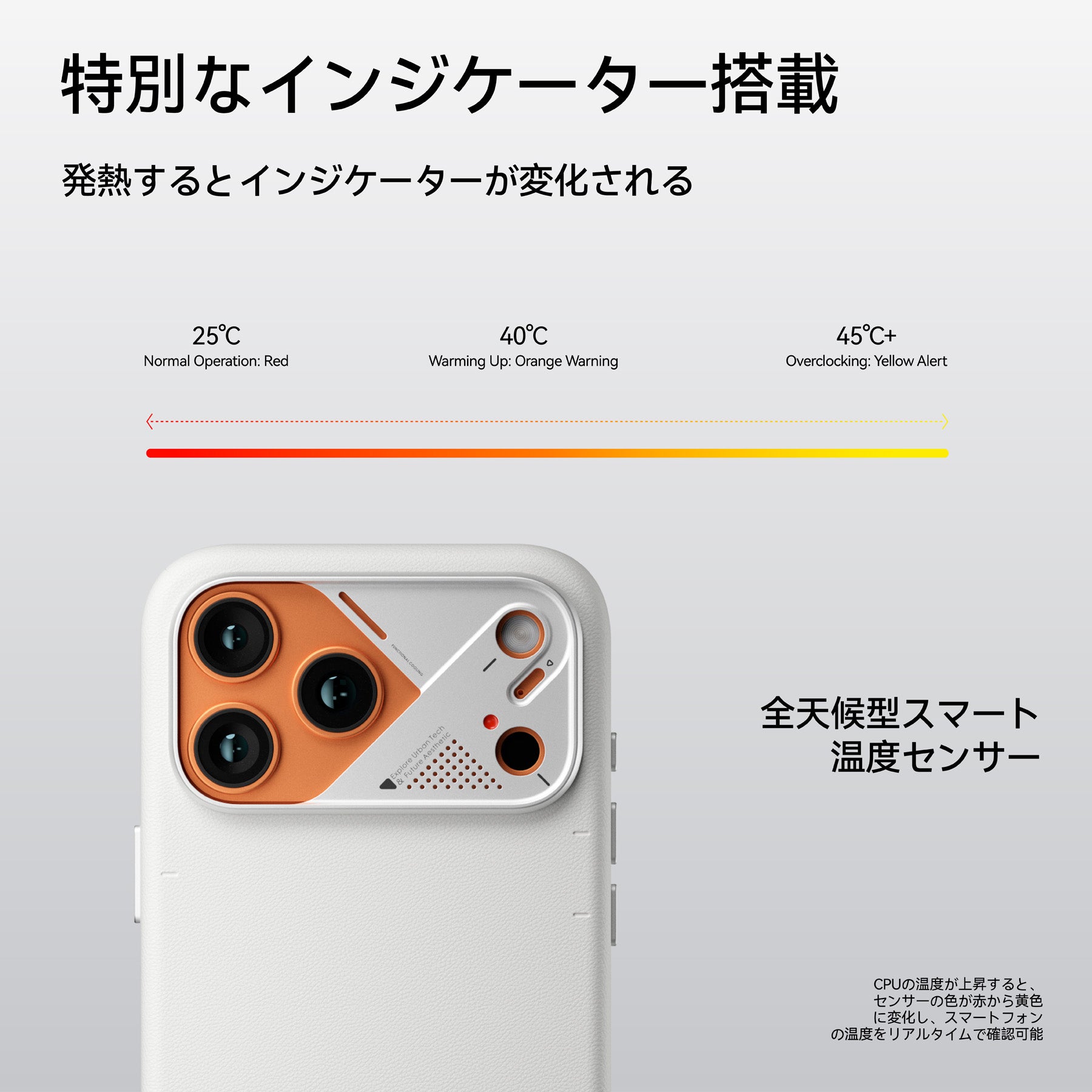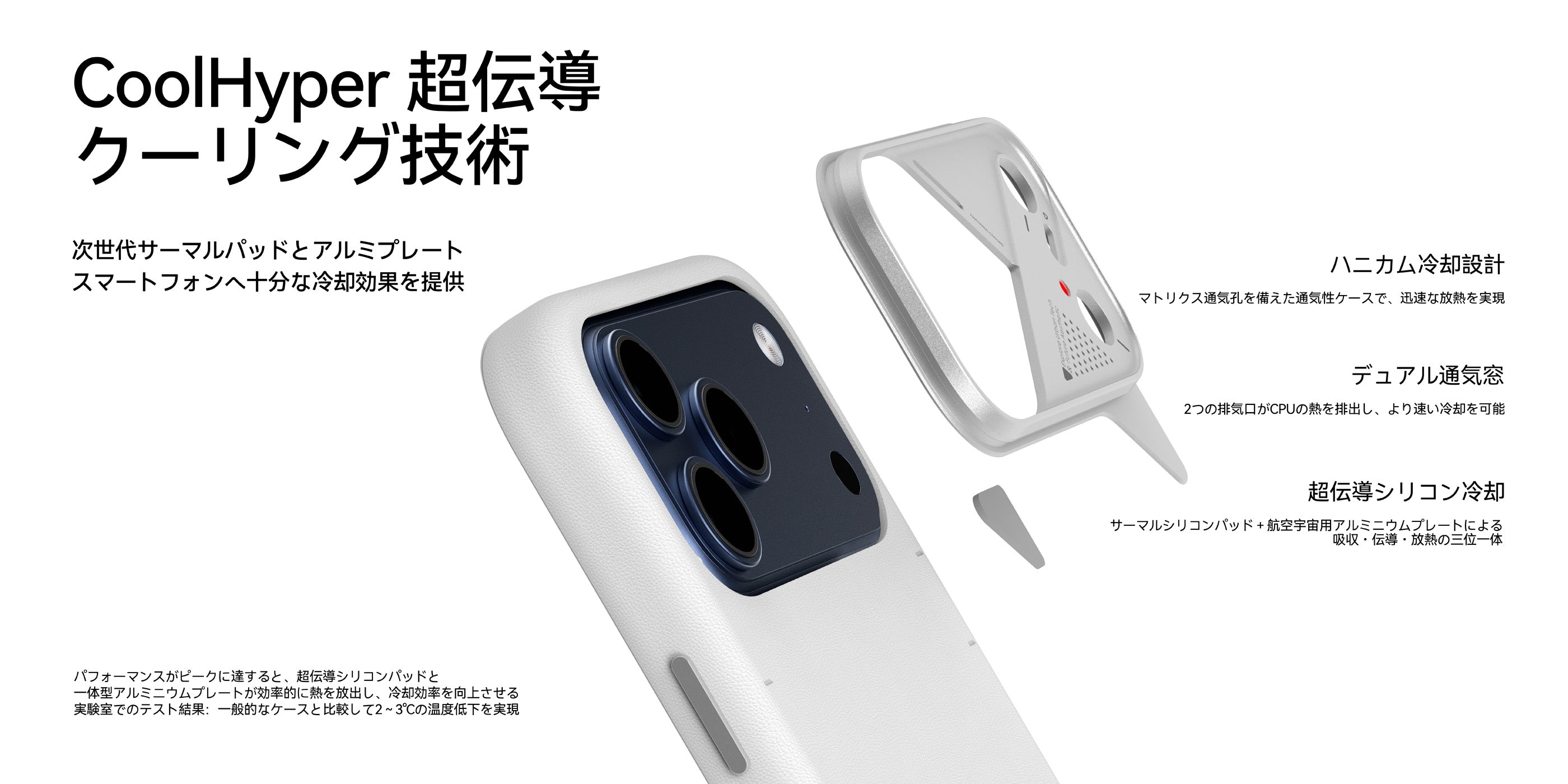 独自開発の CoolHyper 超伝導冷却技術 を搭載し、シリコン製放熱パッドとアルミプレートを一体化。CPU温度の上昇にあわせて赤から黄色へと変化するスマートなカラーチェンジインジケーターで、アクティブな放熱を実現します。