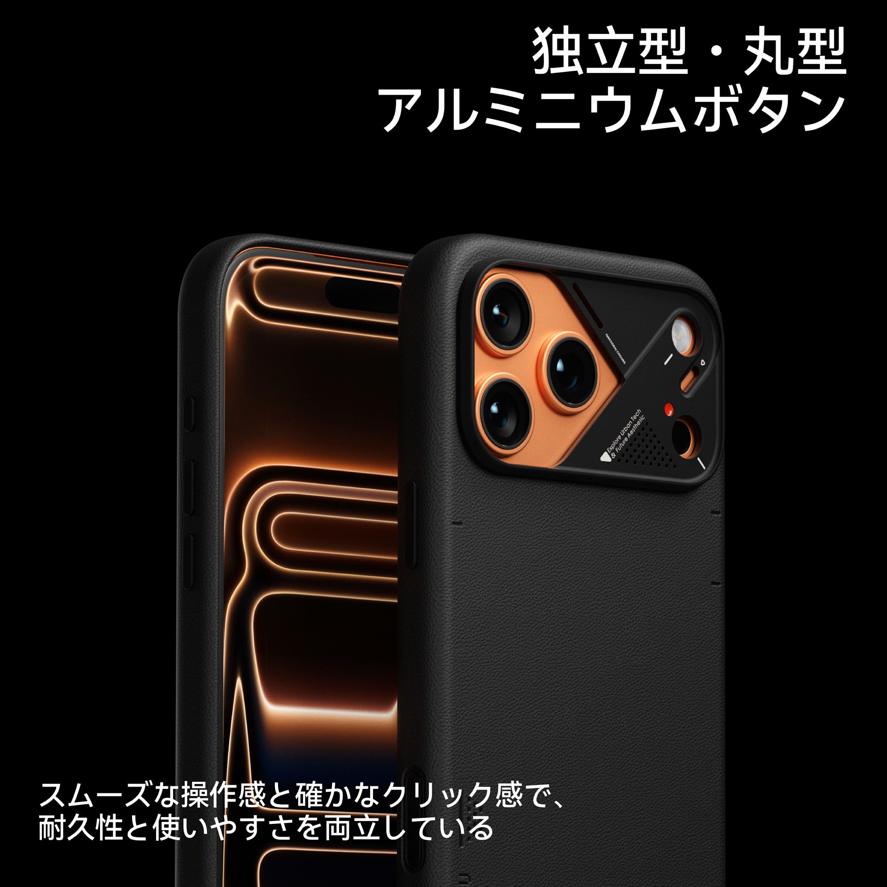さらに、生分解性ヴィーガンレザーを使用したソフトタッチの質感で、環境に配慮しつつ耐久性の高い保護を両立。独立型アルミボタンにより、プレミアムな操作感をお楽しみいただけます。