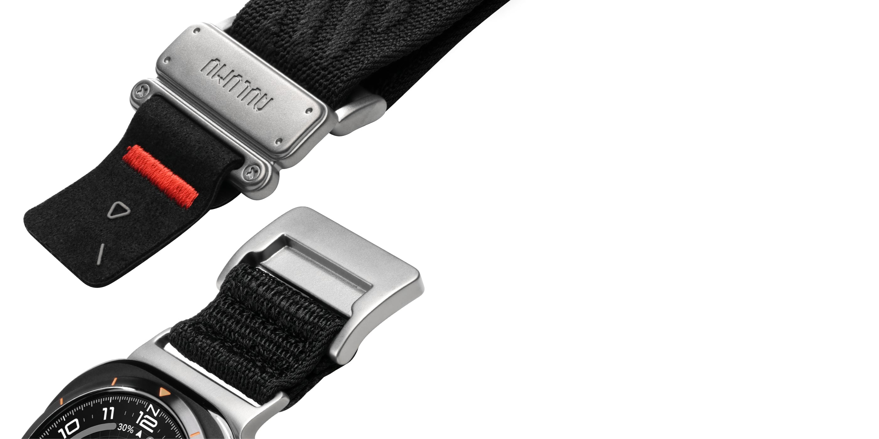 チタン製バックルと面ファスナーによる、ダブル固定