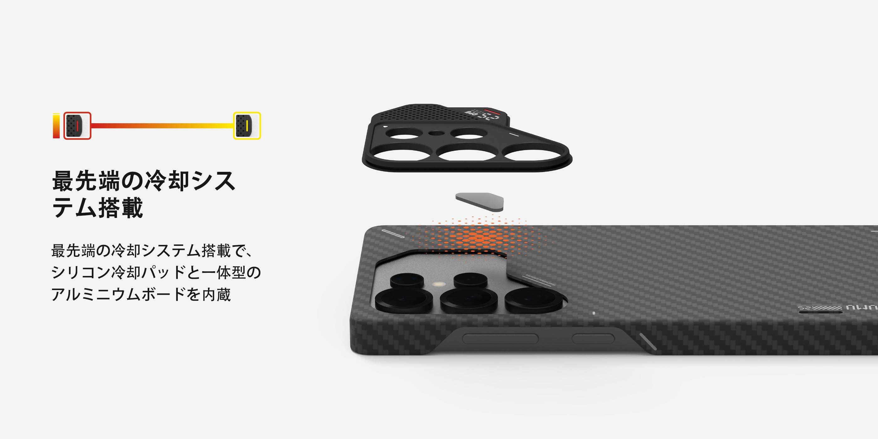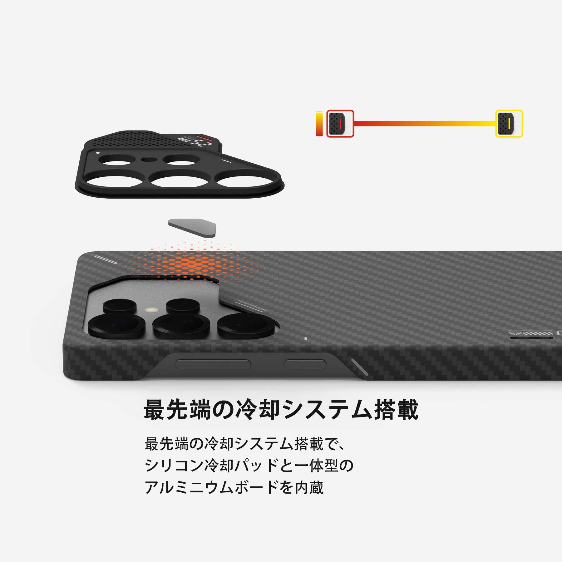 高性能を追求したこのケースは、内蔵のシリコン製冷却パッドと一体型アルミニウム合金プレートによる、スマホを頻繁に利用しても効率的に放熱を対応できる!